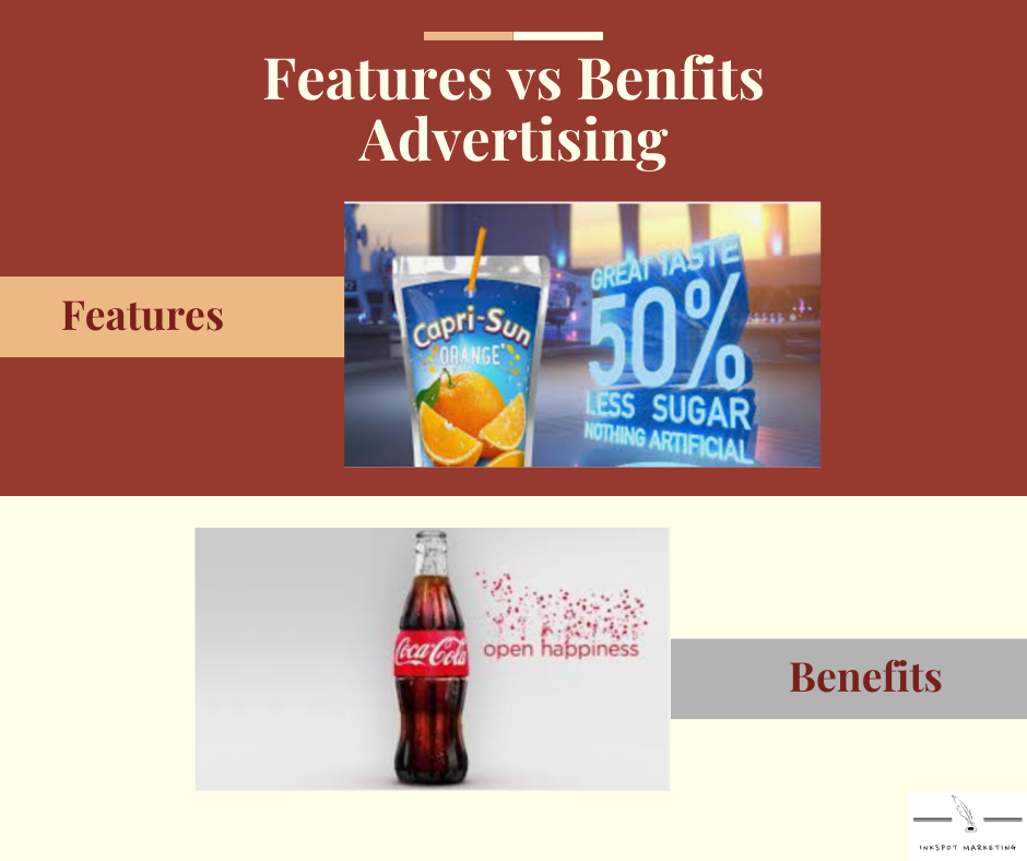Think about your customer, do they want to see the benefits or the features of your products? Not all advertisements have to be benefit-focused. Sometimes a good advertisement combines both, so use your judgement here.