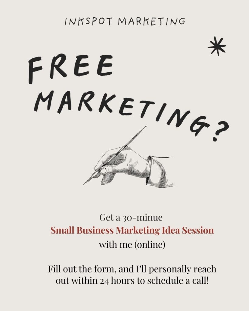 Confused about marketing? Let’s find a strategy that meets your goals and budget. Get a FREE 30-minute small business marketing consultation.